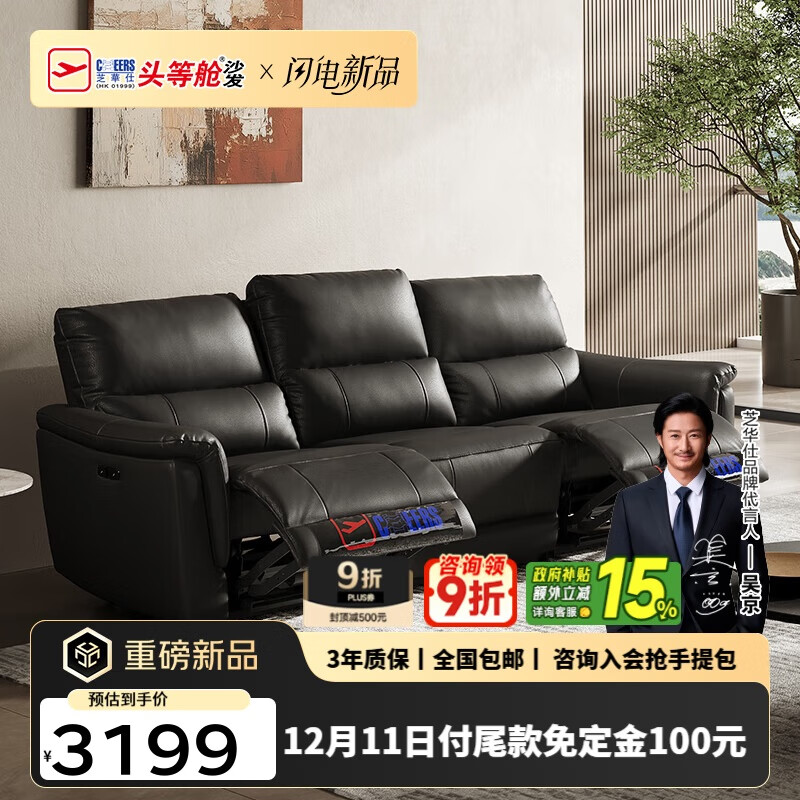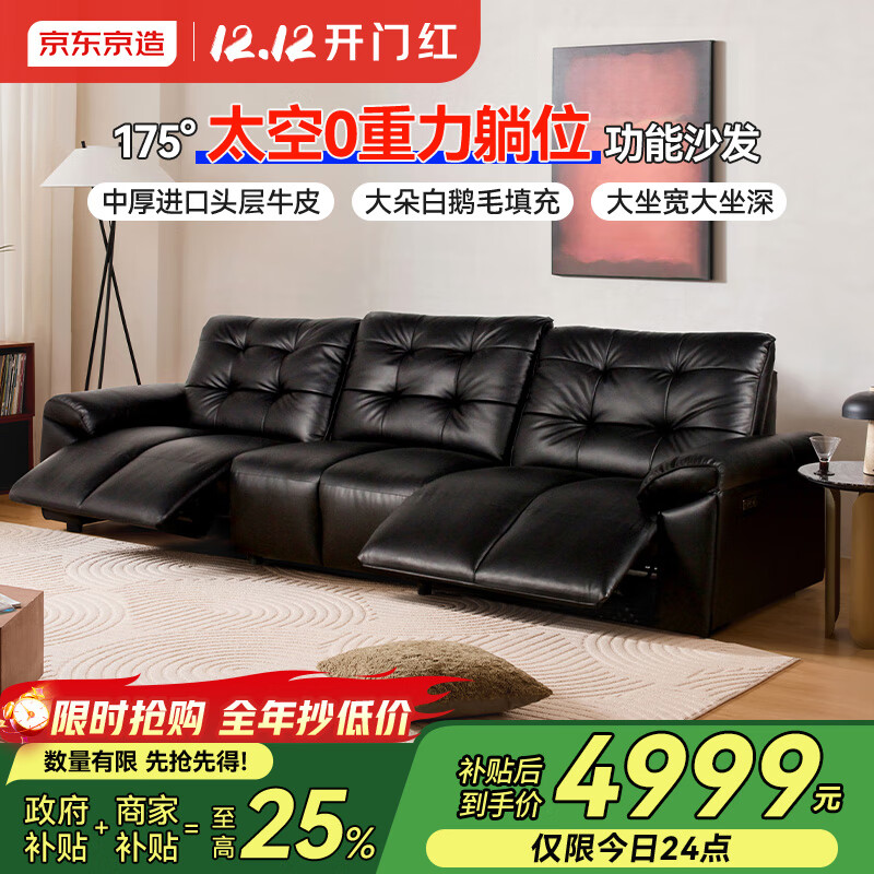 自营京东京造大黑熊真皮电动功能沙发客厅2025新款头层牛皮双电动3.1m