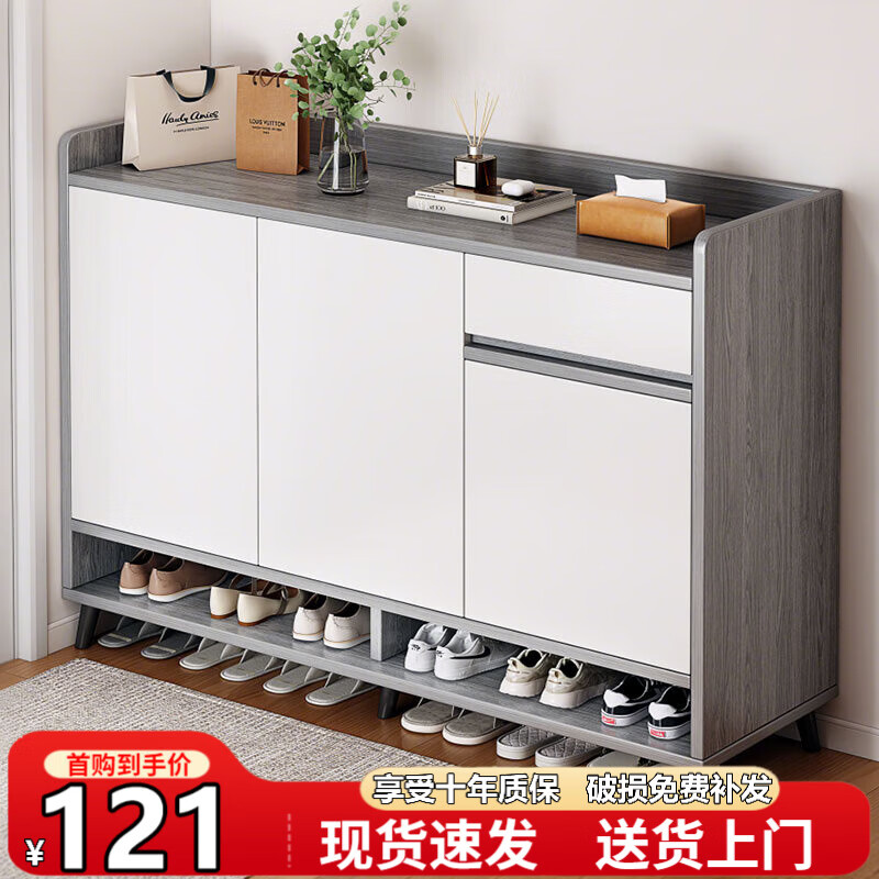 旗舰店立太(LEADTEK)鞋柜门口入户收纳柜大容量一体靠墙玄关柜多层家用收纳架实木鞋架 【店长推荐-加厚15MM板】100*32*100CM