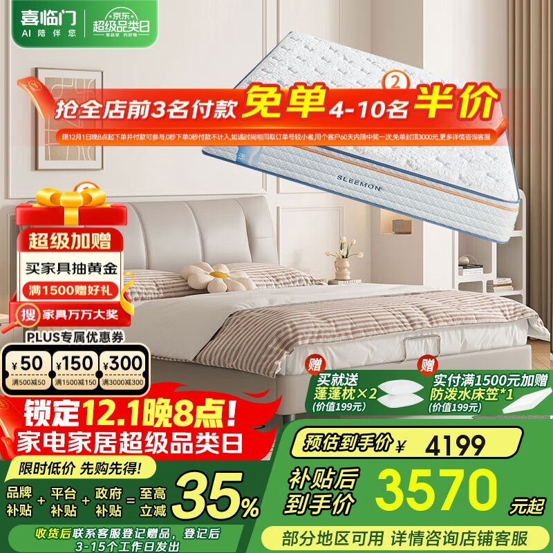 百亿补贴喜临门官方子品牌城市爱情席梦思弹簧软硬两用乳胶椰棕家用大白垫