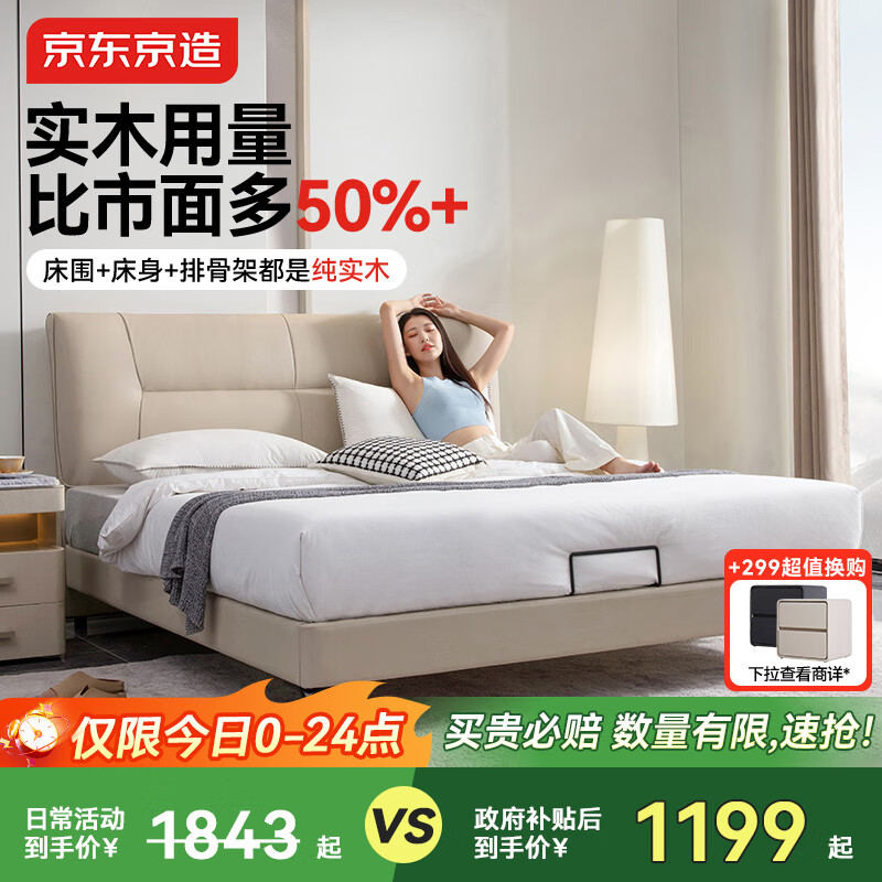 自营京东京造家居潮汐真皮床 头层牛皮实木框架 主卧双人床1.8×2米