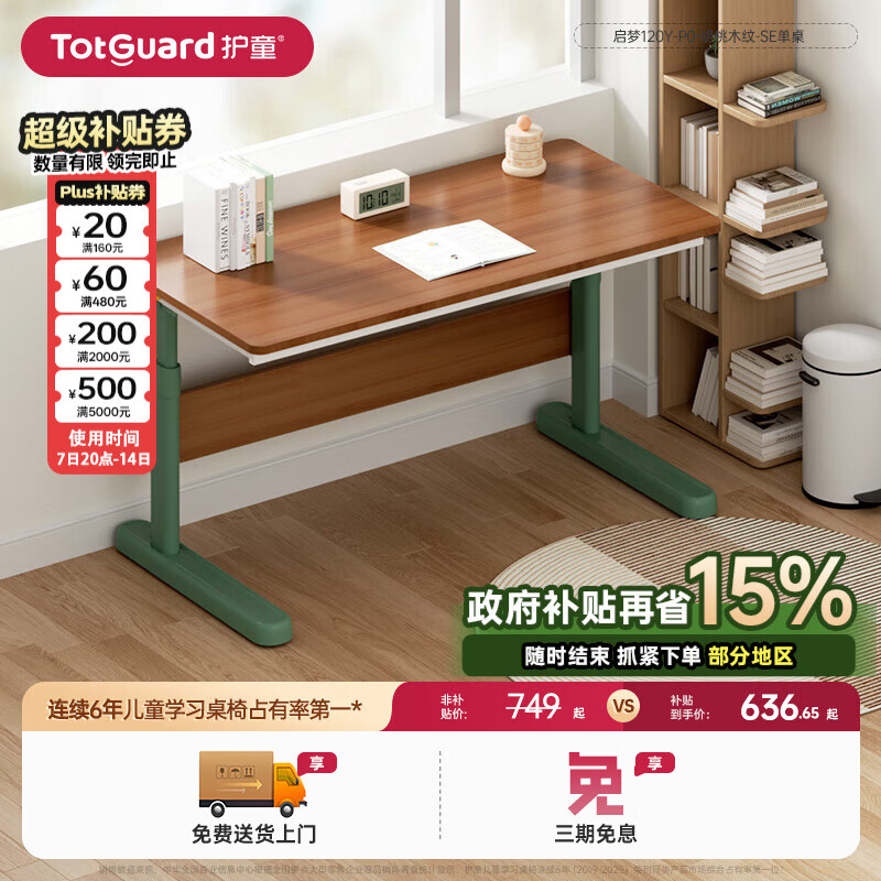 旗舰店护童儿童学习桌椅套装可升降学生写字书桌家用办公桌子 启梦胡桃木纹单桌(无抽屉)