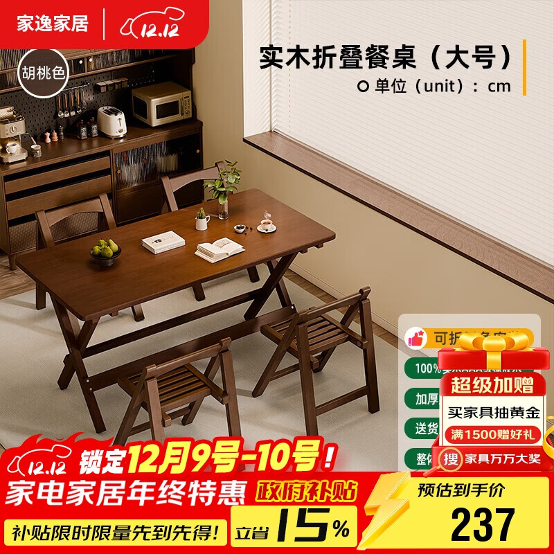 自营家逸实木折叠餐桌家用简易小户型长饭桌出租房户外便携桌子