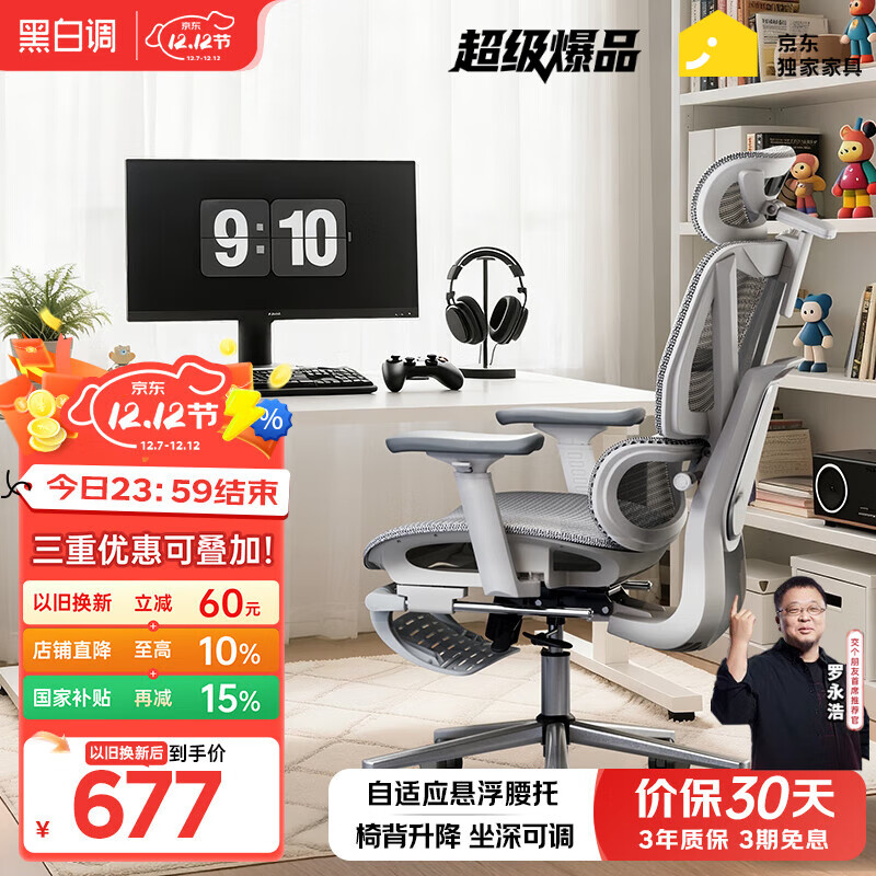 自营黑白调P3人体工学椅电脑椅办公人工力学座椅学习电竞椅子可躺国家补贴