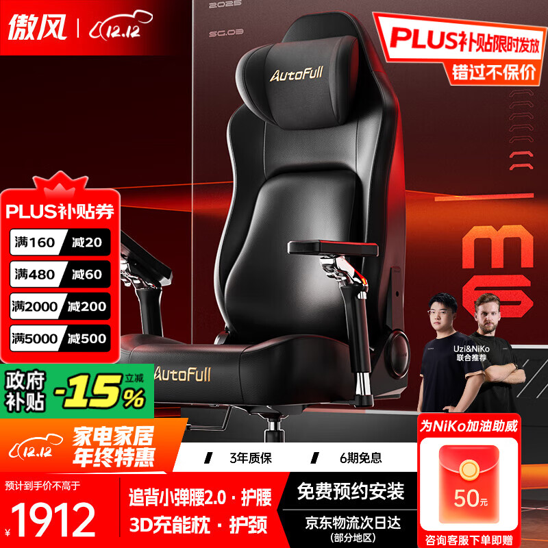 自营傲风【Uzi推荐】M6电竞椅人体工学椅电脑椅人工力学椅游戏椅国家补贴