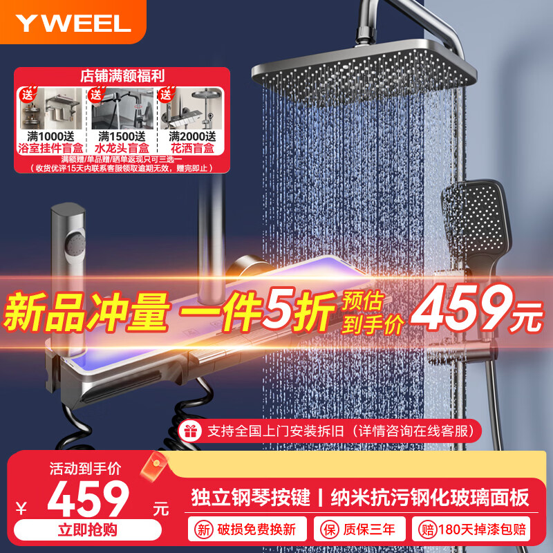 旗舰店一卫(yweel)淋浴花洒套装卫浴室花酒喷头全套增压沐浴器淋雨器家用花洒套装 豪华氛围灯钢琴键花洒-986003