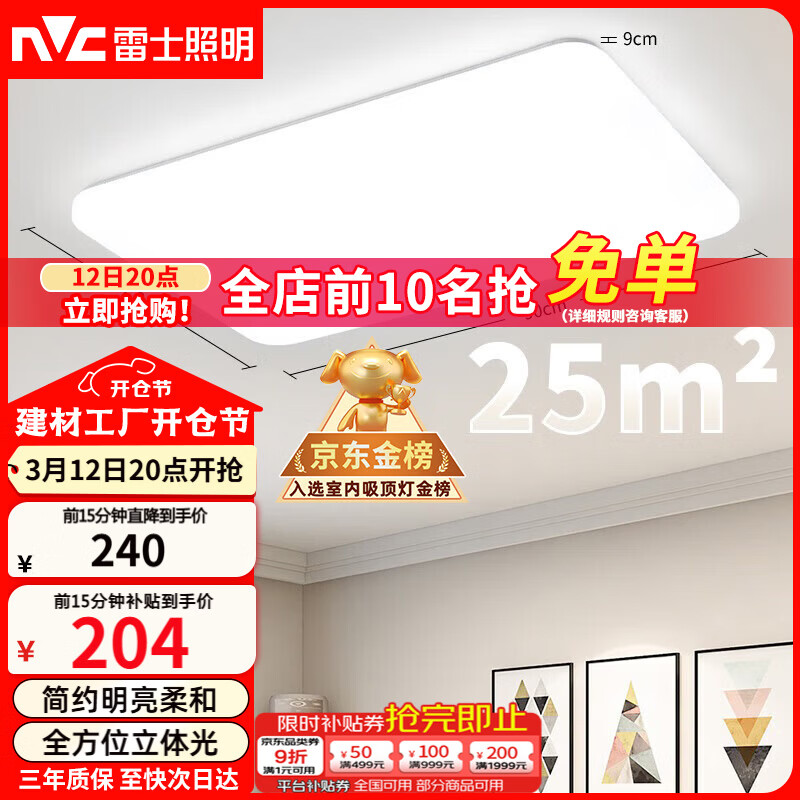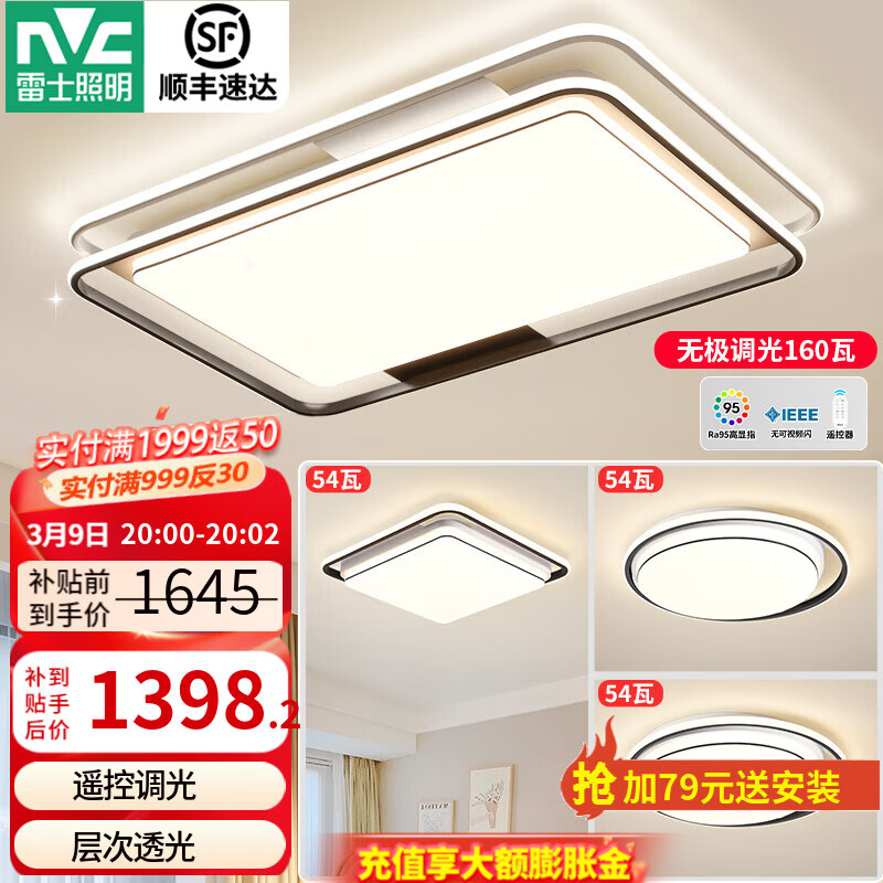 旗舰店雷士(NVC)现代简约LED大厅吸顶灯客厅大灯饰全屋温馨卧室书房灯具套餐高显 悠然【3室1厅】4灯-客厅+卧室*3