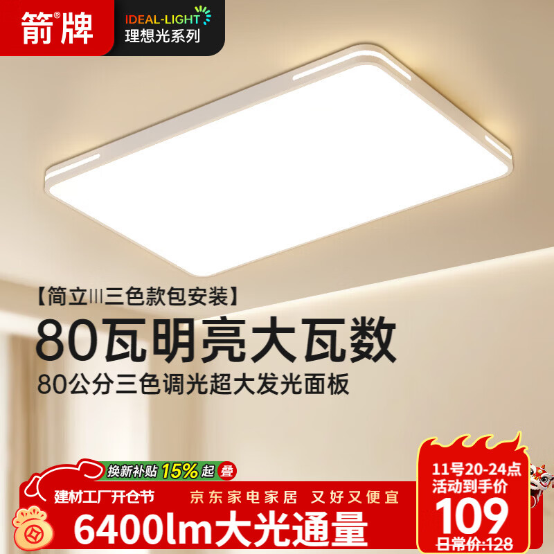 自营松下(Panasonic)吸顶灯全光谱护眼140W三档调色客厅大灯【补贴】【包安装】