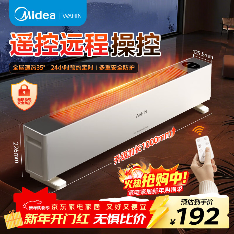 自营华凌美的踢脚线取暖器家用遥控电暖气浴室防水大面积速热暖气片移动地暖节能省电华凌神机WH-NDT20T02R