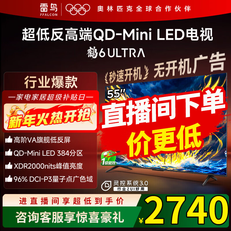 TCL雷鸟 鹤6 Ultra 25款(PLUS版) 55英寸 MiniLED家电 超高对比度 无开机广告 55S595C Ultra 55英寸 国补 鹤6ultra 25款