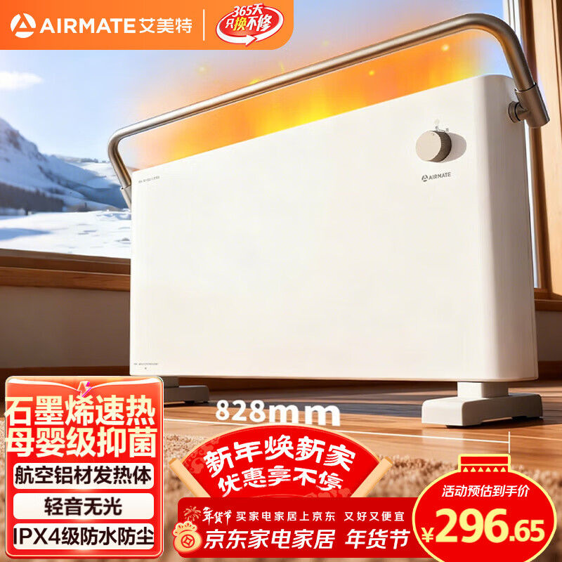 自营艾美特(AIRMATE)【新品】石墨烯取暖器速热暖气片电暖器暖风机小太阳浴室电暖器全屋大面积升温家用欧式快热炉