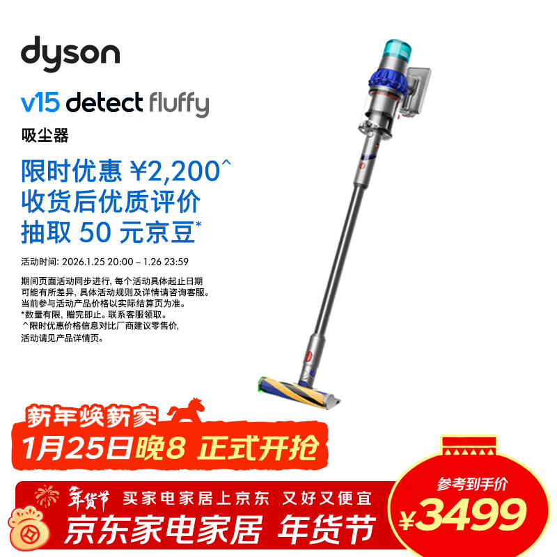 自营戴森(DYSON)V15 Detect Fluffy无绳吸尘器(新一代蓝色)【原装进口】手持无线 除螨 宠物家庭适用