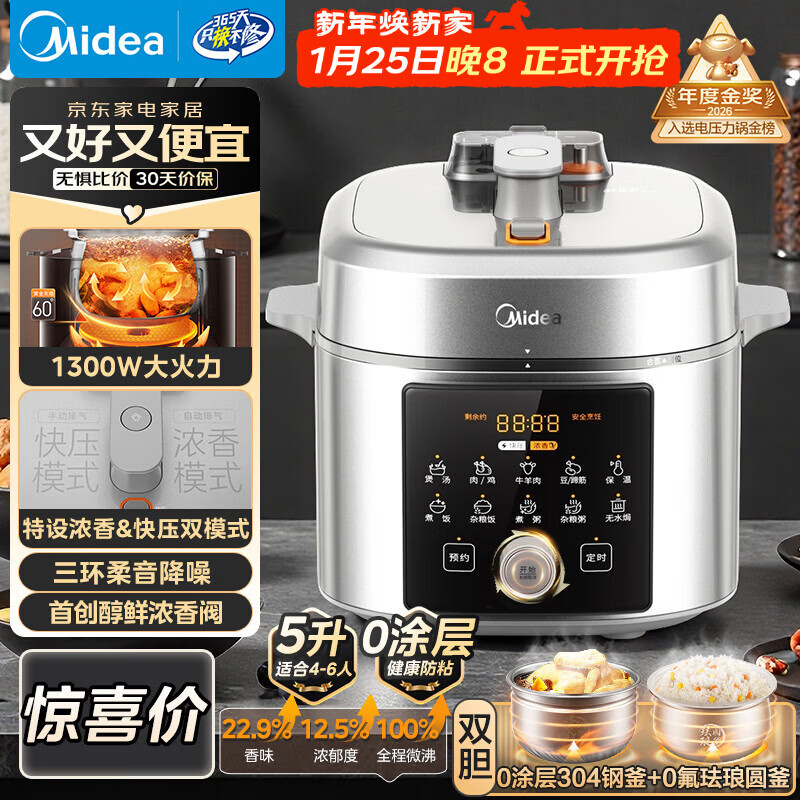 百亿补贴美的电压力锅家用5L大容量智能双胆高压锅多功能全自动饭煲新款