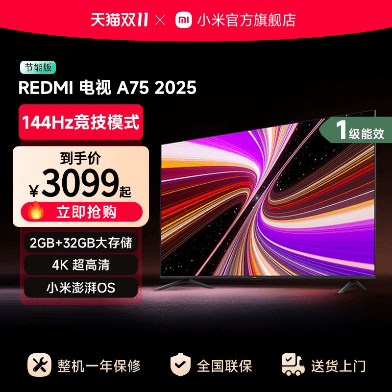 旗舰店小米REDMI A75英寸144Hz高刷高清平板液晶电视机以旧换新补贴2025