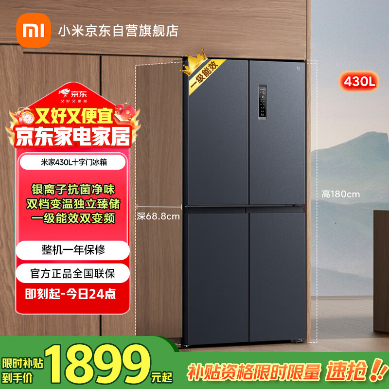 自营米家小米430L十字门冰箱一级变频家用超薄除菌净味京东自营官方正品BCD-430WMSA国家补贴