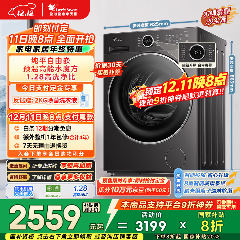 旗舰店小天鹅(LittleSwan)滚筒洗衣机 12公斤大容量 洗脱/洗烘一体带烘干 全自动家用1.1洗净比变频一级能效家电国家补贴 【12公斤无烘干V20】蒸汽消毒洗+APP远程智控