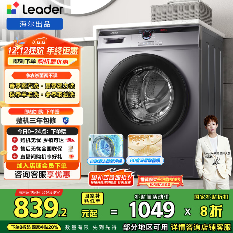 自营统帅(Leader)海尔出品 滚筒洗衣机 全自动家用小户型 10公斤超薄嵌入 京东自营以旧换新国家补贴 @G10B22SE