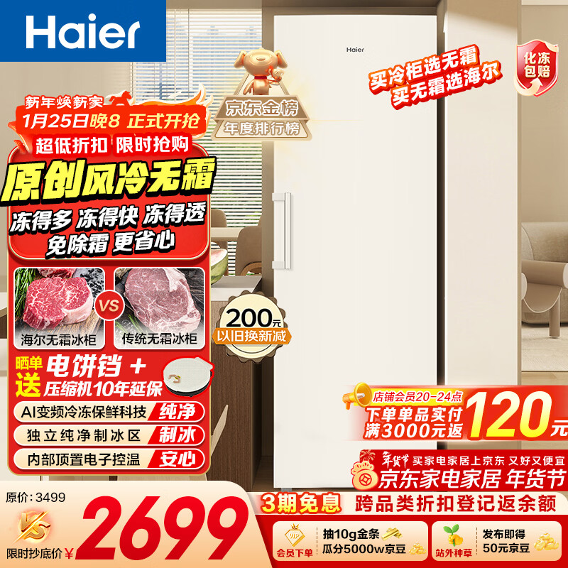自营海尔(Haier)小红花335L立式冰柜小型家用小冰柜风冷无霜一级能效大容量变频冷柜小冰箱BD-335WGHEGDW9国家补贴