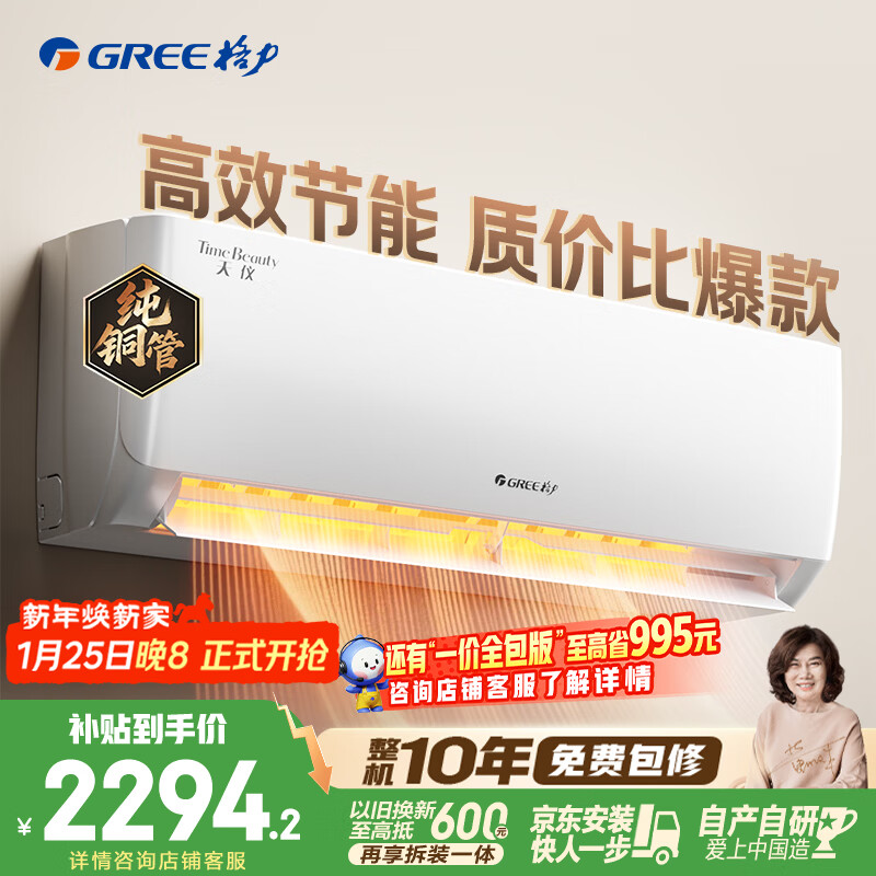 自营格力空调 天仪 大1匹 新一级能效变频 纯铜管卧室节能省电挂机 国家补贴 KFR-26GW/(26504)FNhAa-B1