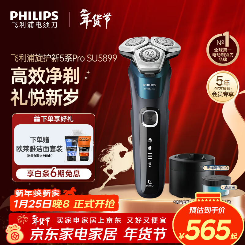 自营飞利浦(PHILIPS)电动剃须刀旋护新5系Pro旗舰同款微提切科技高端刮胡刀 年会奖品年货生日礼物送男生父亲 5831升级