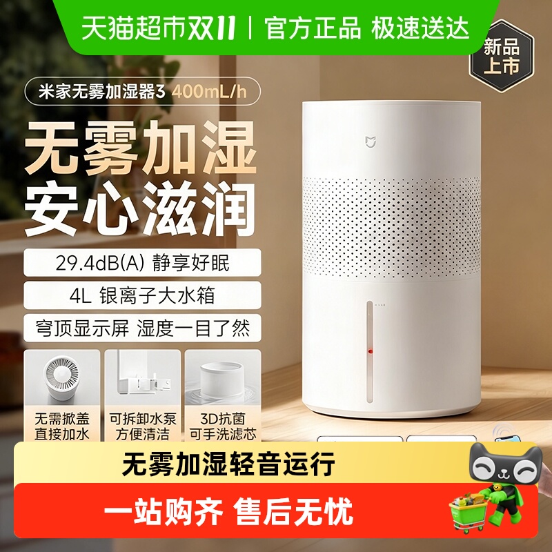 新品小米米家无雾加湿器3 400mL/h 家用卧室空调房静音抗菌大容量