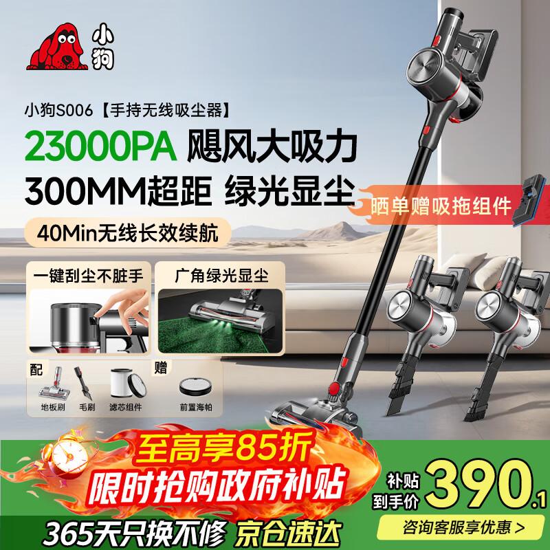 自营小狗吸尘器家用大吸力吸拖一体无线手持绿光显尘干吸湿拖吸尘拖地机宠物猫毛狗毛地毯清洁 S006