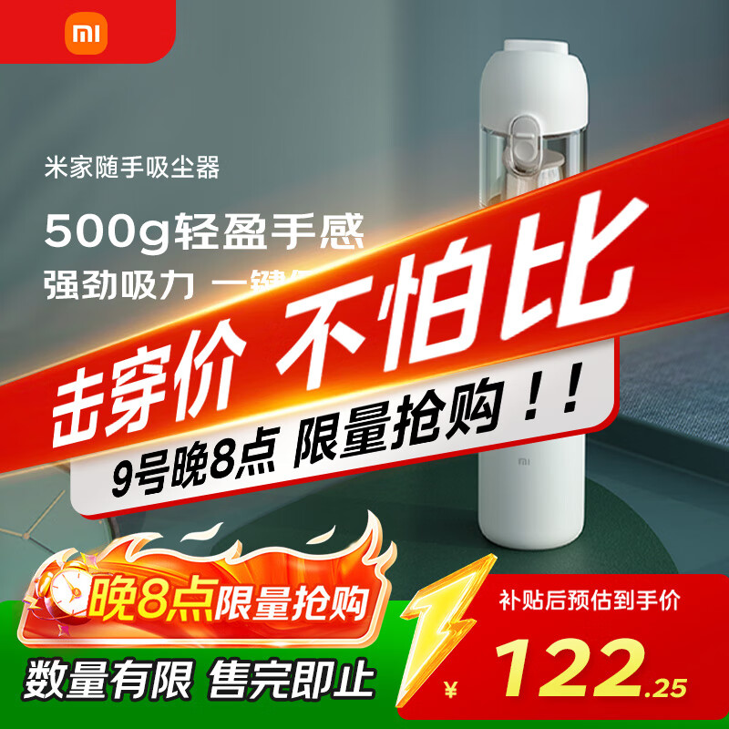 自营米家 小米随手吸尘器 车载家庭两用 无线吸尘器 手感轻盈 无刷电机大吸力一键倒尘 清理宠物毛发