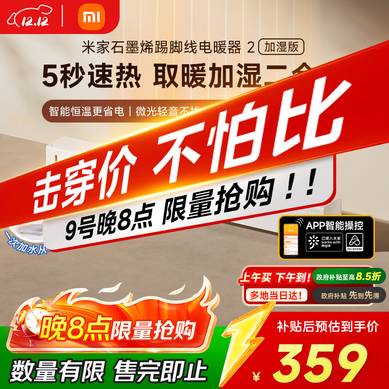 自营米家小米取暖器APP智能石墨烯踢脚线电暖器2加湿版京东自营5秒速热加湿取暖二合一家用TJXDNQ10ZM