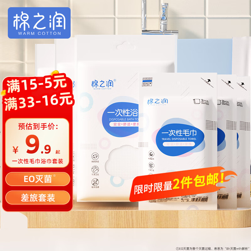 自营棉之润一次性浴巾毛巾 2条大浴巾4条大毛巾旅行装 加厚便携酒店差旅用品
