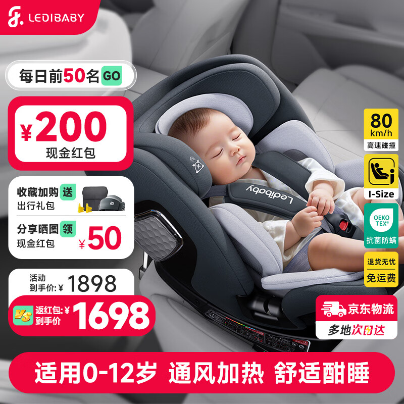 旗舰店ledibaby乐蒂宝贝儿童安全座椅0-6-12岁汽车用婴儿宝宝座椅车载可坐可躺 太空舱2Pro旗舰版-月影灰