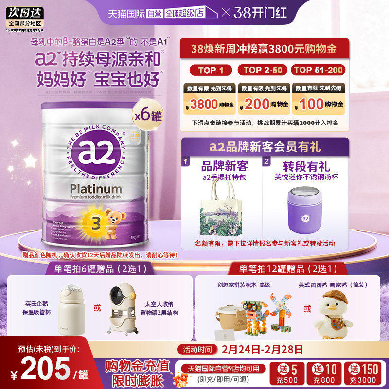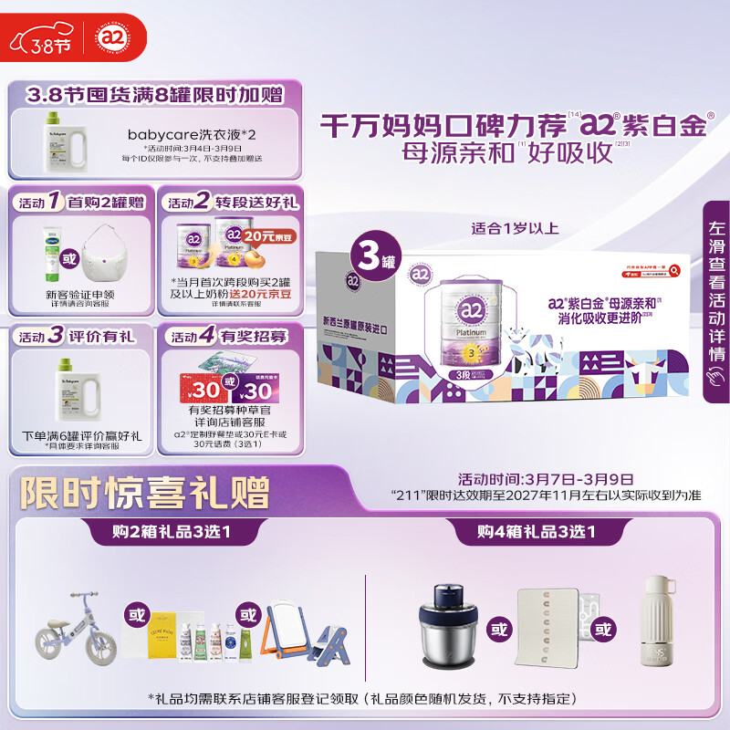 自营【自营】a2奶粉三段新紫白金婴幼儿3段1岁以上900g*6罐
