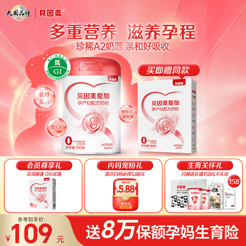 旗舰店贝因美爱加孕妇奶粉孕产妇孕期哺乳期妈妈备孕适用 新老包装随机发货 700g*1罐