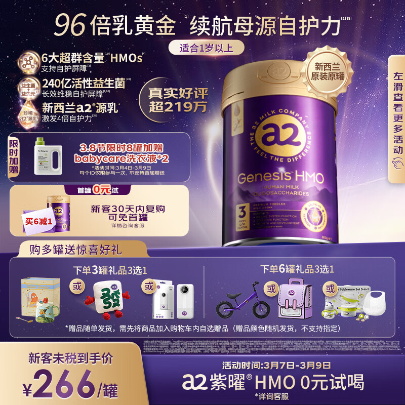 自营a2紫曜A2蛋白+HMO+益生菌 草饲奶源 婴配奶粉3段(1岁+)800g免疫力
