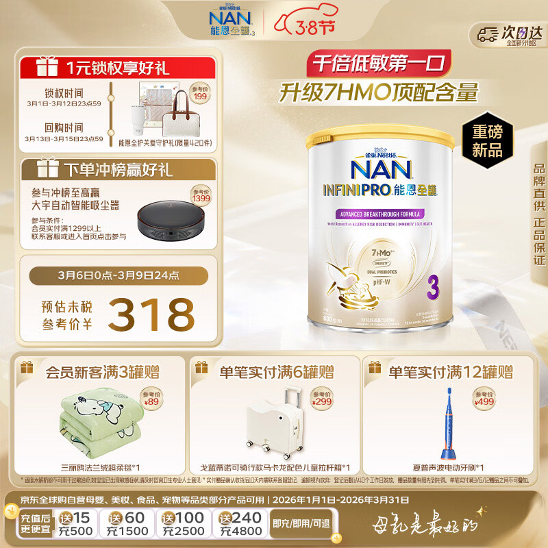 自营雀巢(Nestle)升级能恩全护尖峰水解【7HMOs+双益生菌】3段800g/罐12-36个月