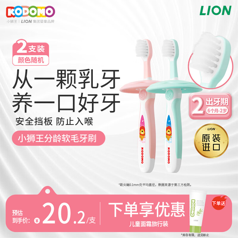 自营狮王(Lion)小狮王儿童牙刷0-2岁2支 宝宝软毛牙刷婴幼儿 颜色随机热门商品