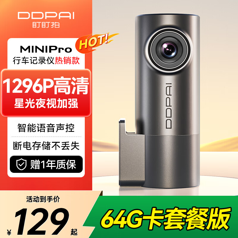 自营盯盯拍行车记录仪MINI Pro 1296P高清星光夜视 智能语音 64GB卡套餐