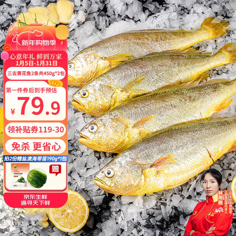 旗舰店三都港三去黄花鱼宁德正宗大黄鱼新鲜冷冻生鲜海鲜水产海鱼年货食材鱼类 三去黄花鱼到手4条共900g