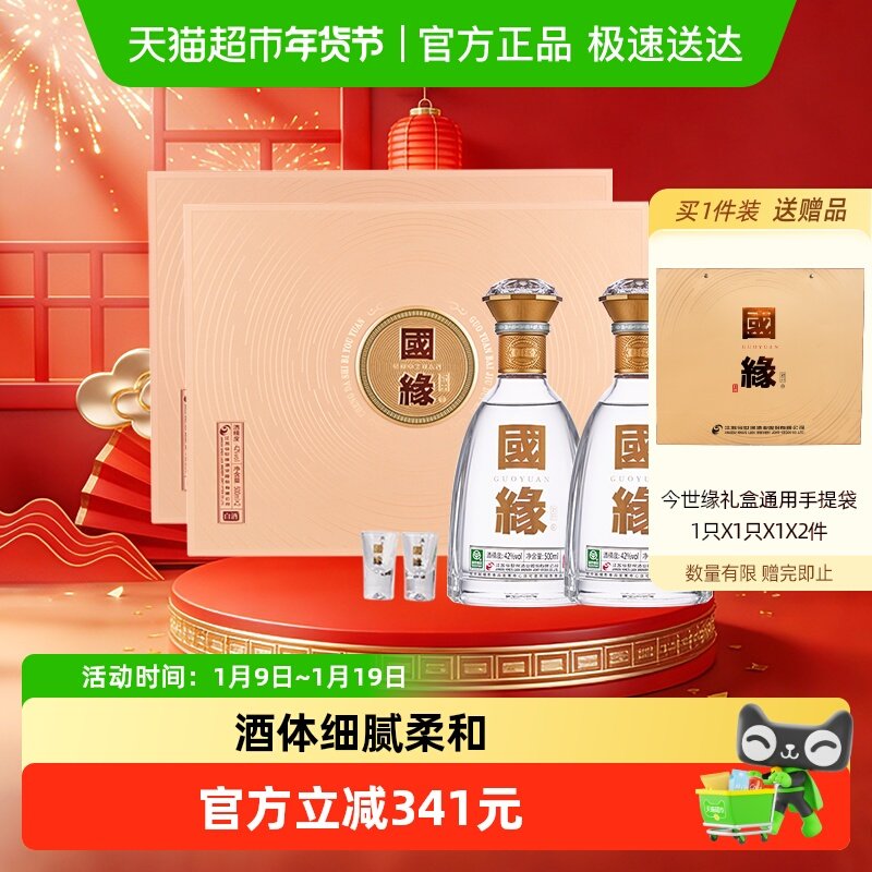 今世缘国缘淡雅礼盒500ml*2瓶42度浓香型白酒