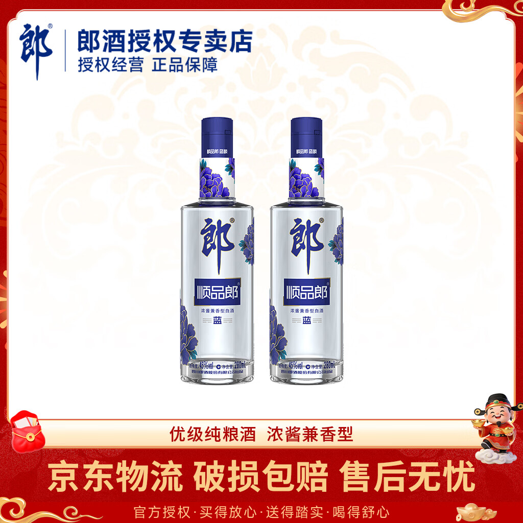 郎酒 顺品郎 蓝顺280ml 45度 浓酱兼香型白酒 光瓶小酒优级纯粮食酒 45度 280mL 2瓶 蓝顺
