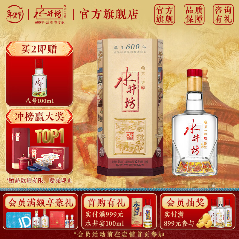 旗舰店水井坊 臻酿大师 (臻酿八号大师升级款) 52度 500mL 1瓶 单瓶 浓香型白酒