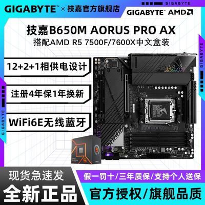 百亿补贴7500F 7600X搭配技嘉B650M AORUS PRO AX电竞雕游戏主板CPU套装