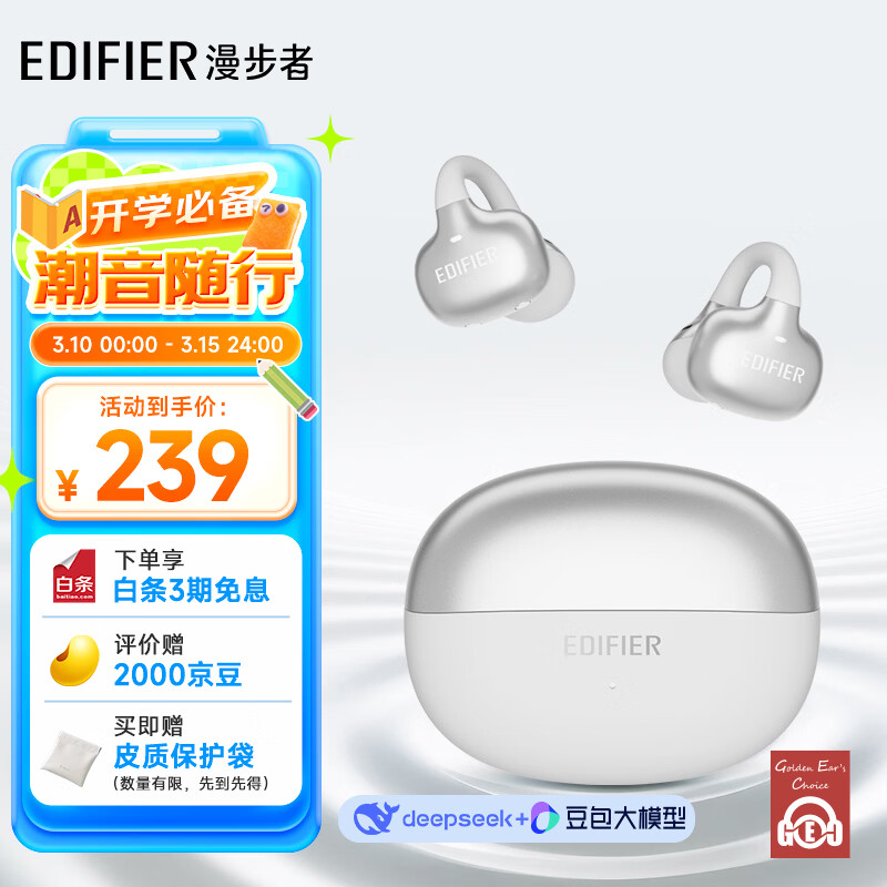 自营漫步者(EDIFIER)X Clip耳夹式蓝牙耳机 翻译耳机 翻译机 开放式 跑步运动耳机 蓝牙6.0 月岩白 女神节礼物
