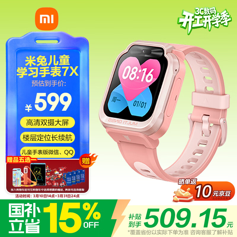 自营小米(MI)米兔儿童电话手表7X粉色高清双摄大屏国家补贴楼层定位防水微信小学生初高中生男女孩智能运动手表