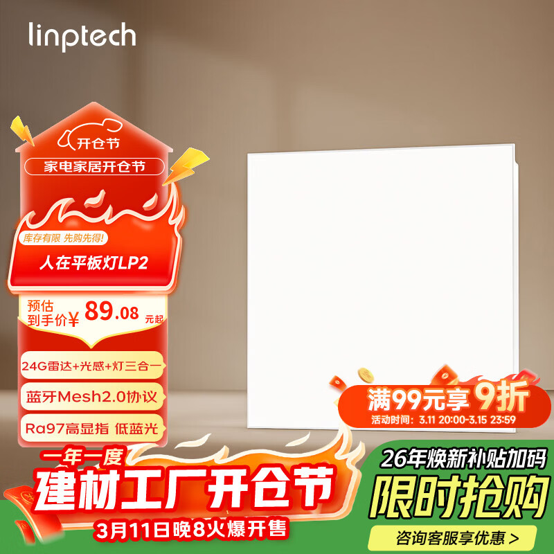自营linptech人体存在平板灯 雷达加光感蓝牙mesh2.0 已接入米家APP LP2-3030