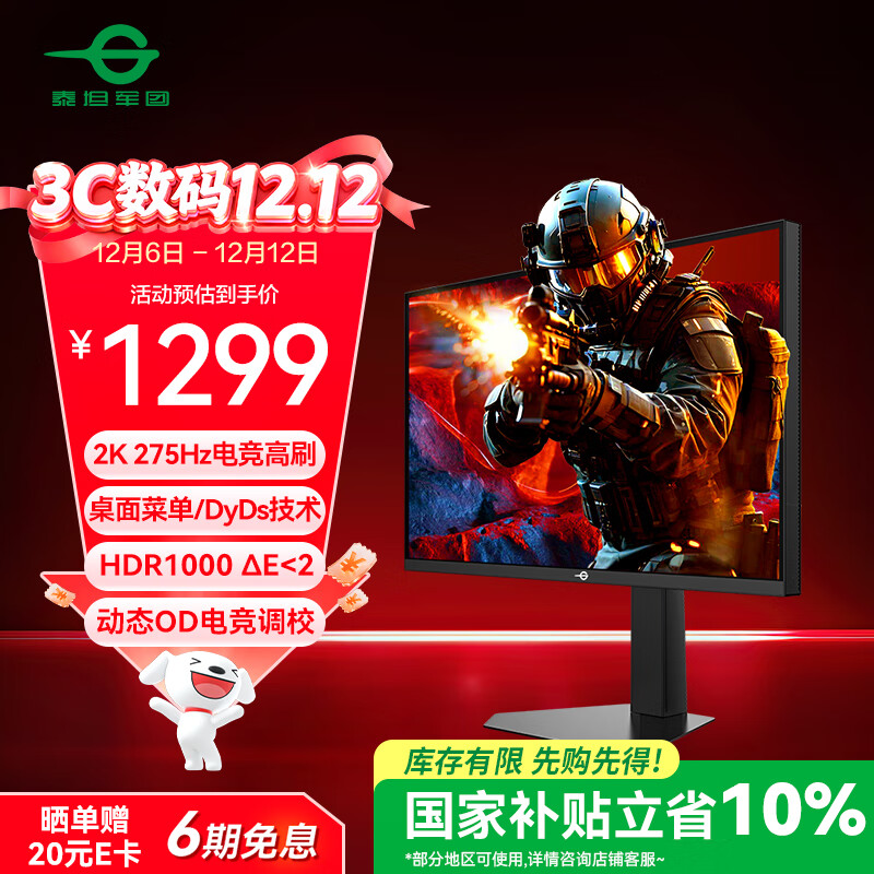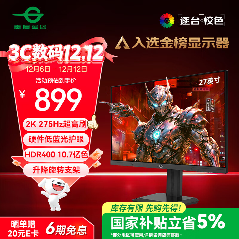 自营泰坦军团27英寸 2K 275Hz超高刷新率HDR400 FastIPS 10.7亿色 硬件低蓝光 旋转升降电竞显示器240Hz P2710S