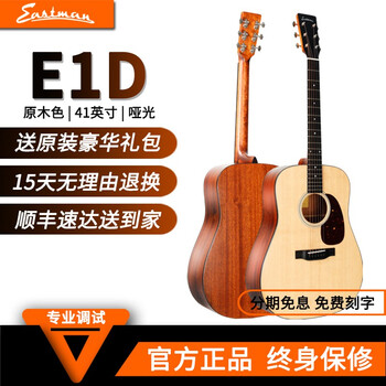 旗舰店EASTMANE系列全单电箱男女民谣木初学进阶伊斯特曼木吉他民谣入门吉他E1D E1D云杉沙比利