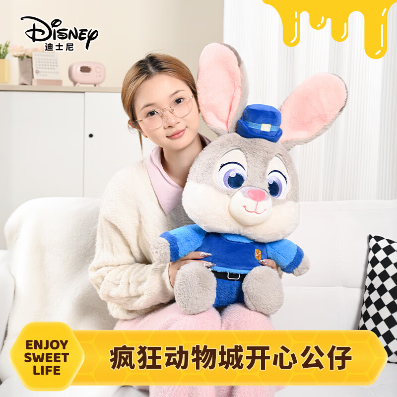 自营迪士尼(Disney)疯狂动物城朱迪开心公仔女孩生日礼物女玩偶毛绒玩具抱枕38cm