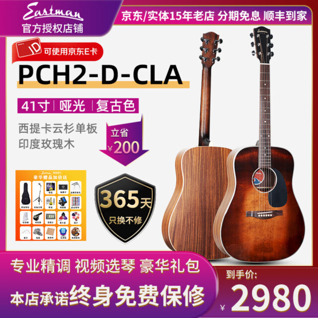 EASTMANEastman民谣吉他伊斯特曼PCH1 pch2/3初学吉他面单板男女学生入门 PCH2-D-CLA复古色
