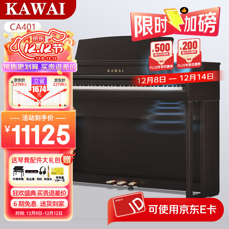 旗舰店卡瓦依(KAWAI)电钢琴木质键盘重锤88键CA系列立式高端专业考级演奏圣诞节礼物 CA401(CA28G升级款)+琴凳礼包