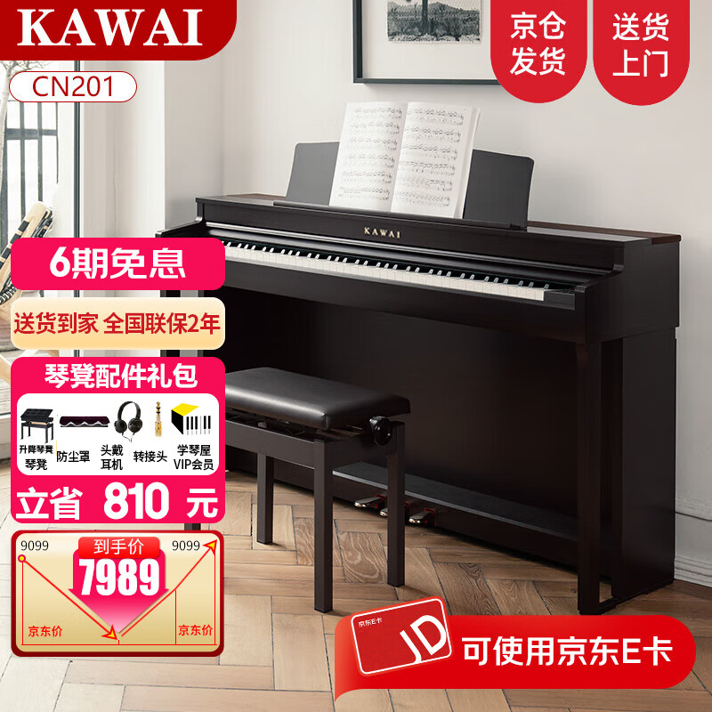 旗舰店卡瓦依(KAWAI)电钢琴CN201键盘88键逐键配重 象牙质感键面高端立式专业配置钢琴 CN201全套+超值礼包