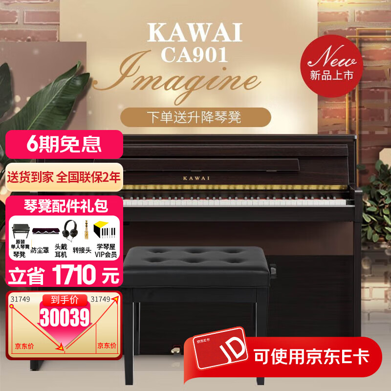 旗舰店卡瓦依(KAWAI)电钢琴木质键盘重锤88键CA系列立式高端专业考级演奏成人家用钢琴 立式免安装印尼进口CA901旗舰款